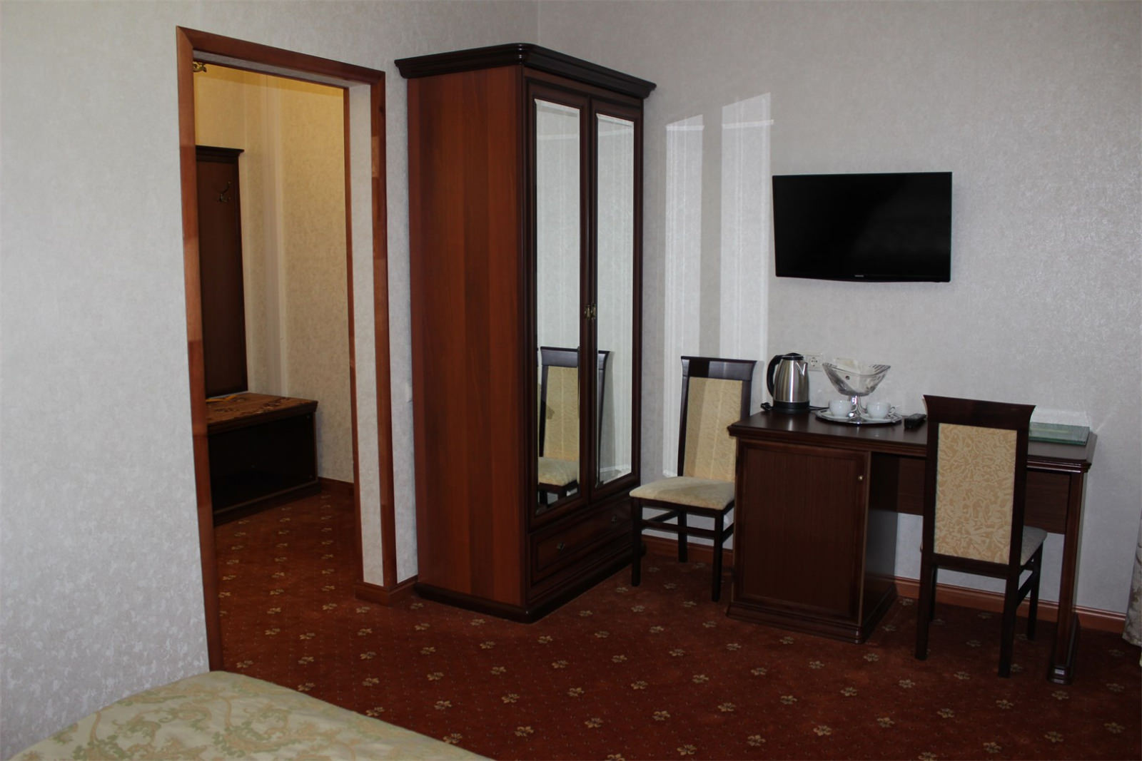 Площадь номера - 27 кв.м. 2 осн. места. Балкон. Мебель: вешалка, зеркало, кровать двуспальная, прикроватные тумбочки, стол, стул, шкаф. Оборудование: мини-холодильник, система общего кондиционирования, телевизор, телефон, чайный набор посуды, электрочайник. Санузел: с душем или ванной, тапочки, туалетные принадлежности, фен, халат. Сервис: Wi-Fi бесплатно, смена полотенец, смена постельного белья, уборка номера.